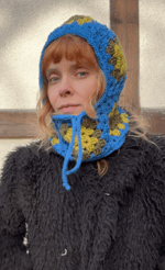 It's stretchy and can be worn like a hood. Due to granny square stitch there's holes in the design, this bonnet is suitable for milder temperatures