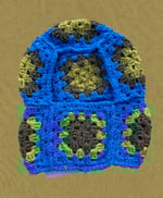 It's stretchy and can be worn like a hood. Due to granny square stitch there's holes in the design, this bonnet is suitable for milder temperatures